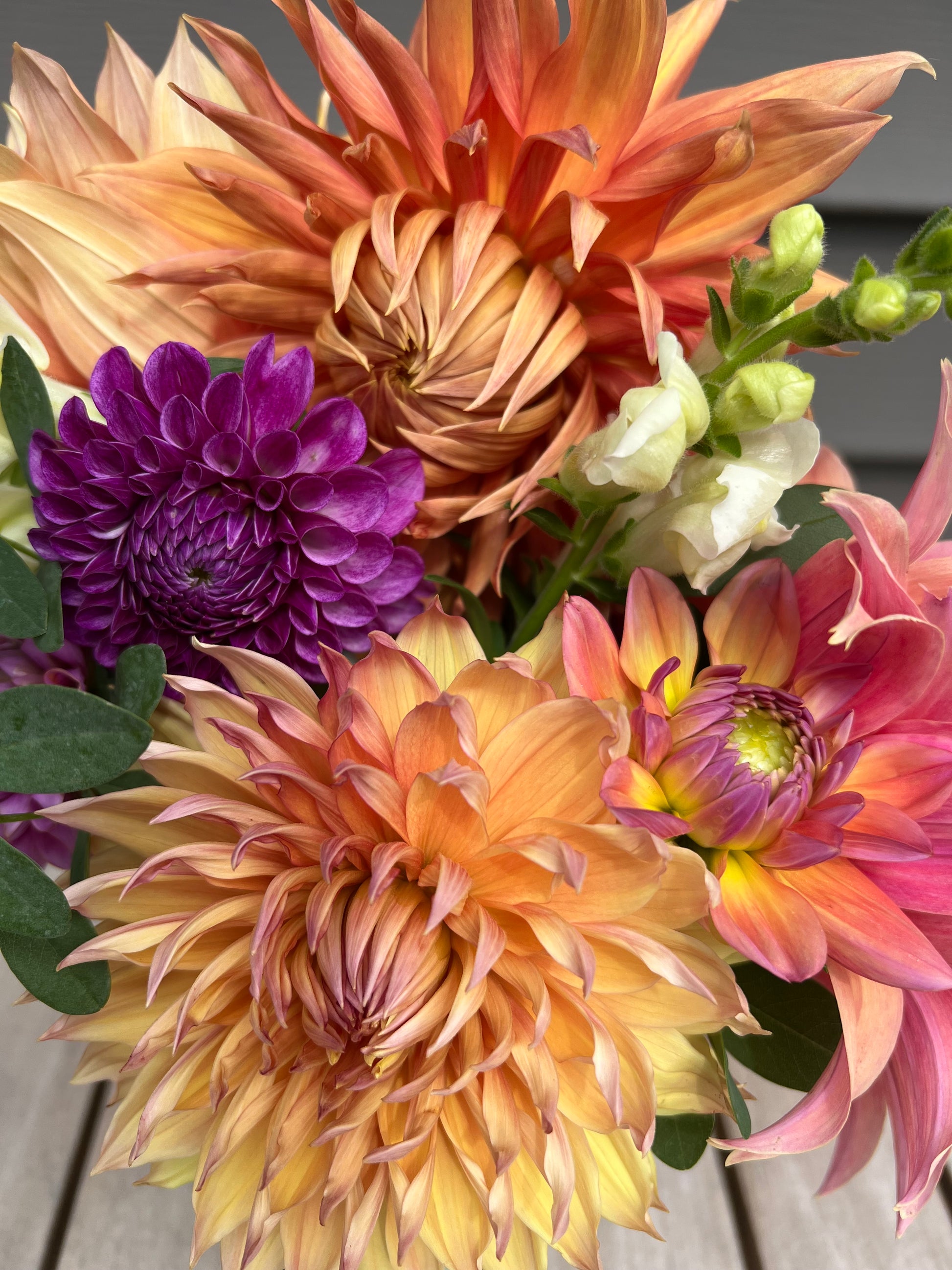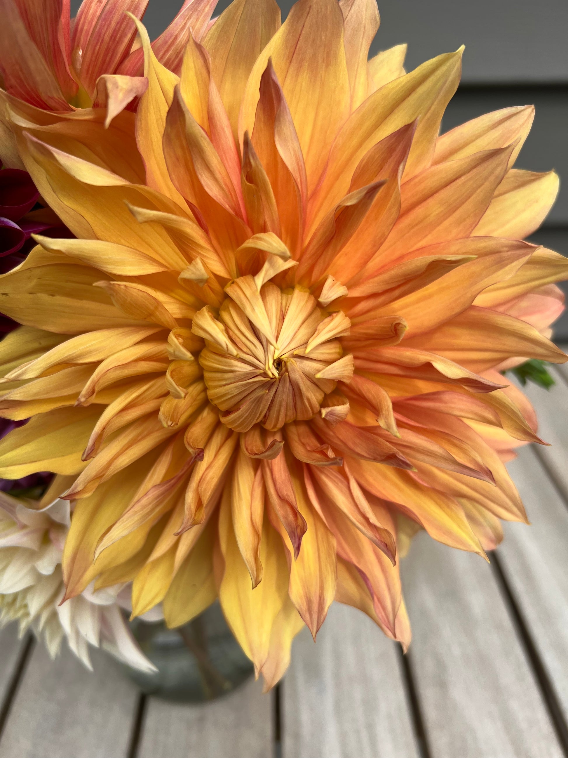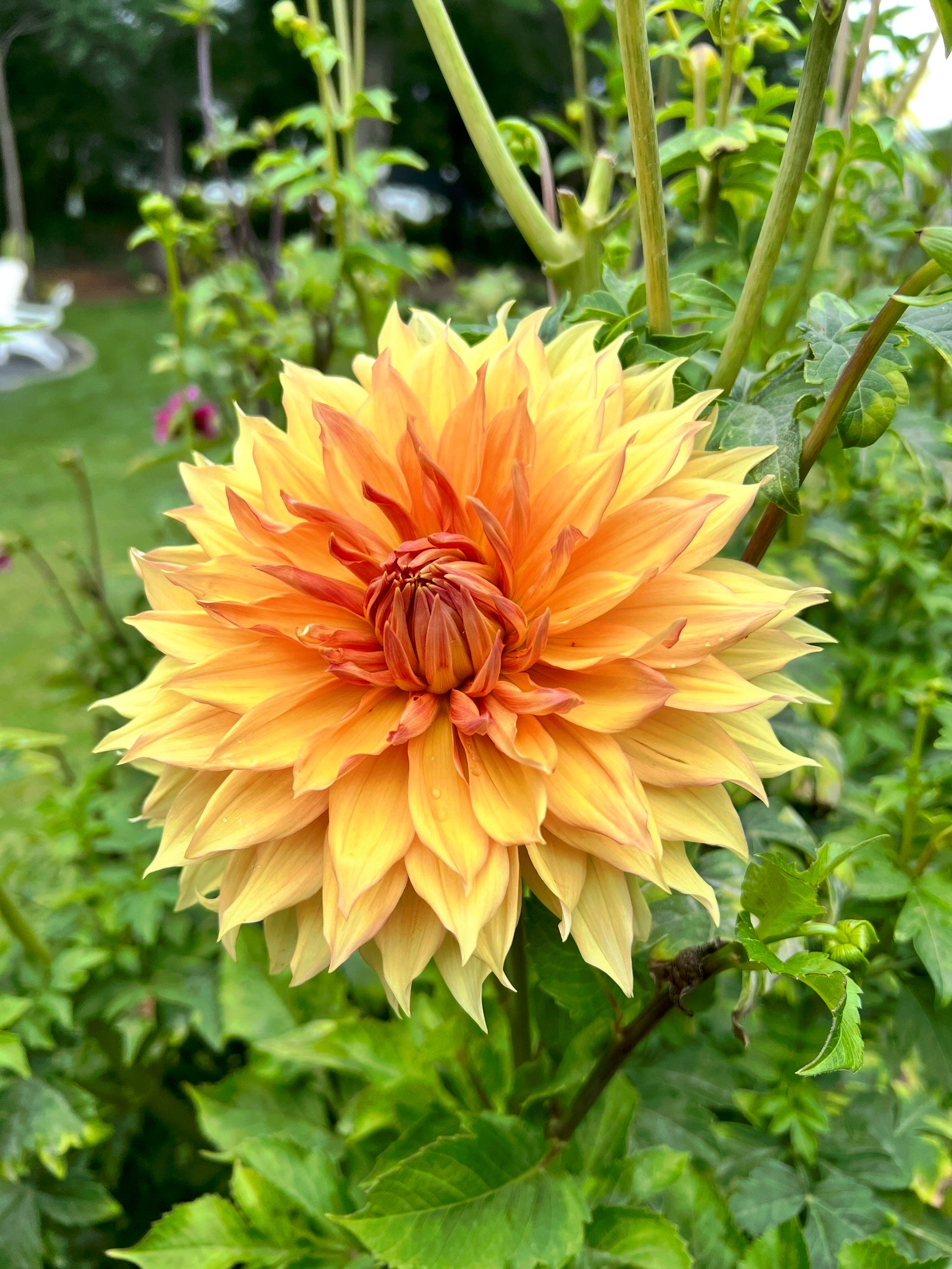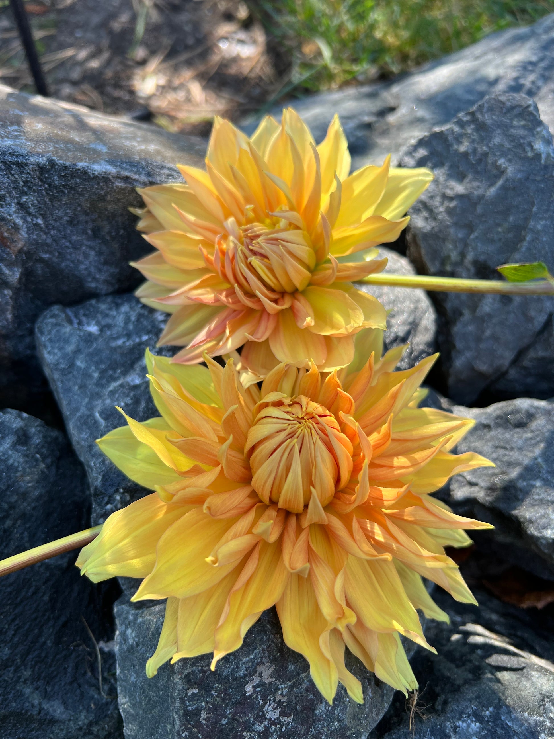 This bronze beauty, adorned with touches of gold, boasts large, well-formed flower heads that have earned it accolades at Dahlia shows, including a Royal Horticultural Society Award of Garden Merit. Its informal decorative form produces gorgeous 6-10 inch blooms with frilly petals, showcasing rich golden hues reminiscent of a sunset. Perfect for creating grand, eye-catching bouquets!