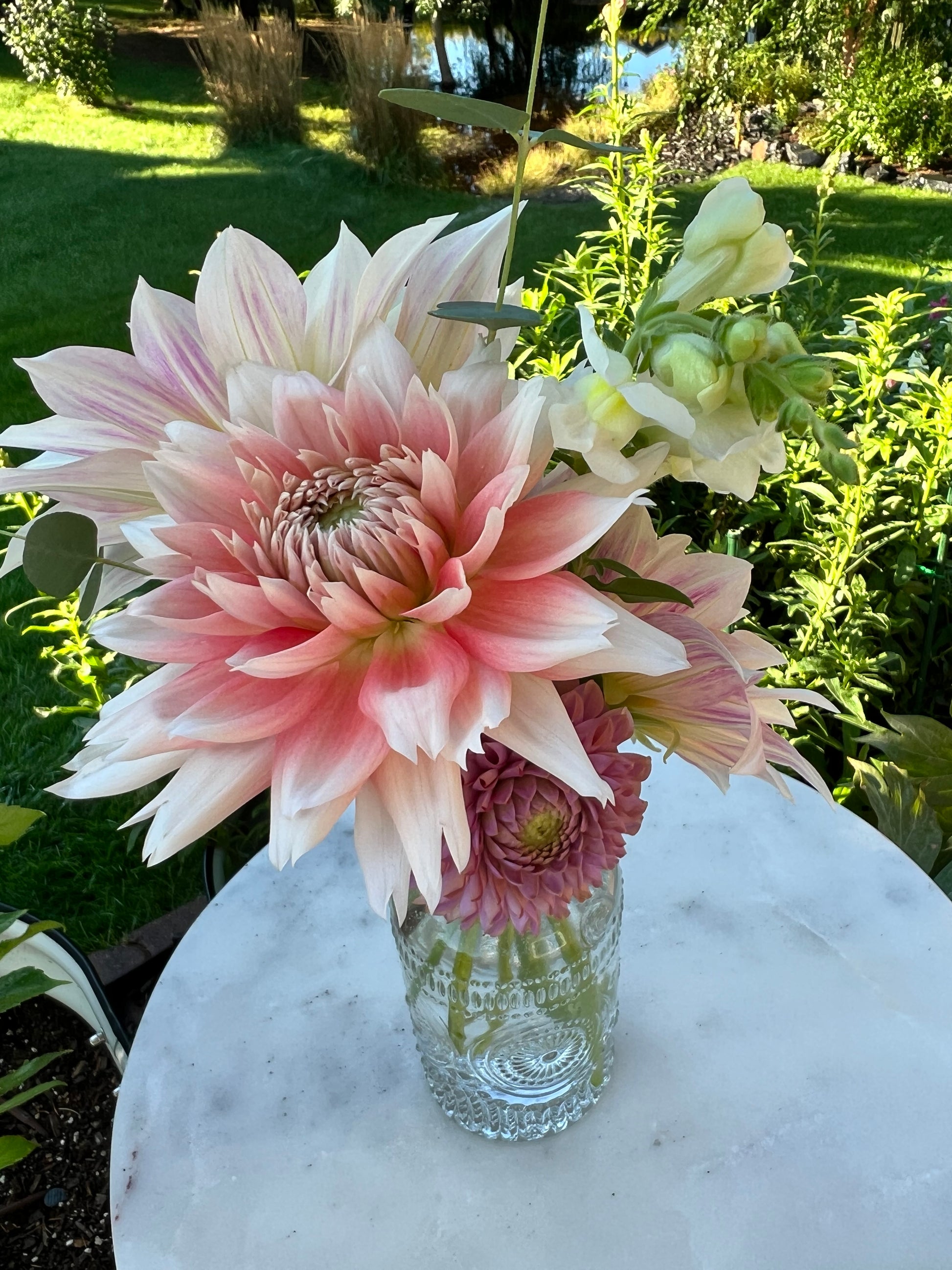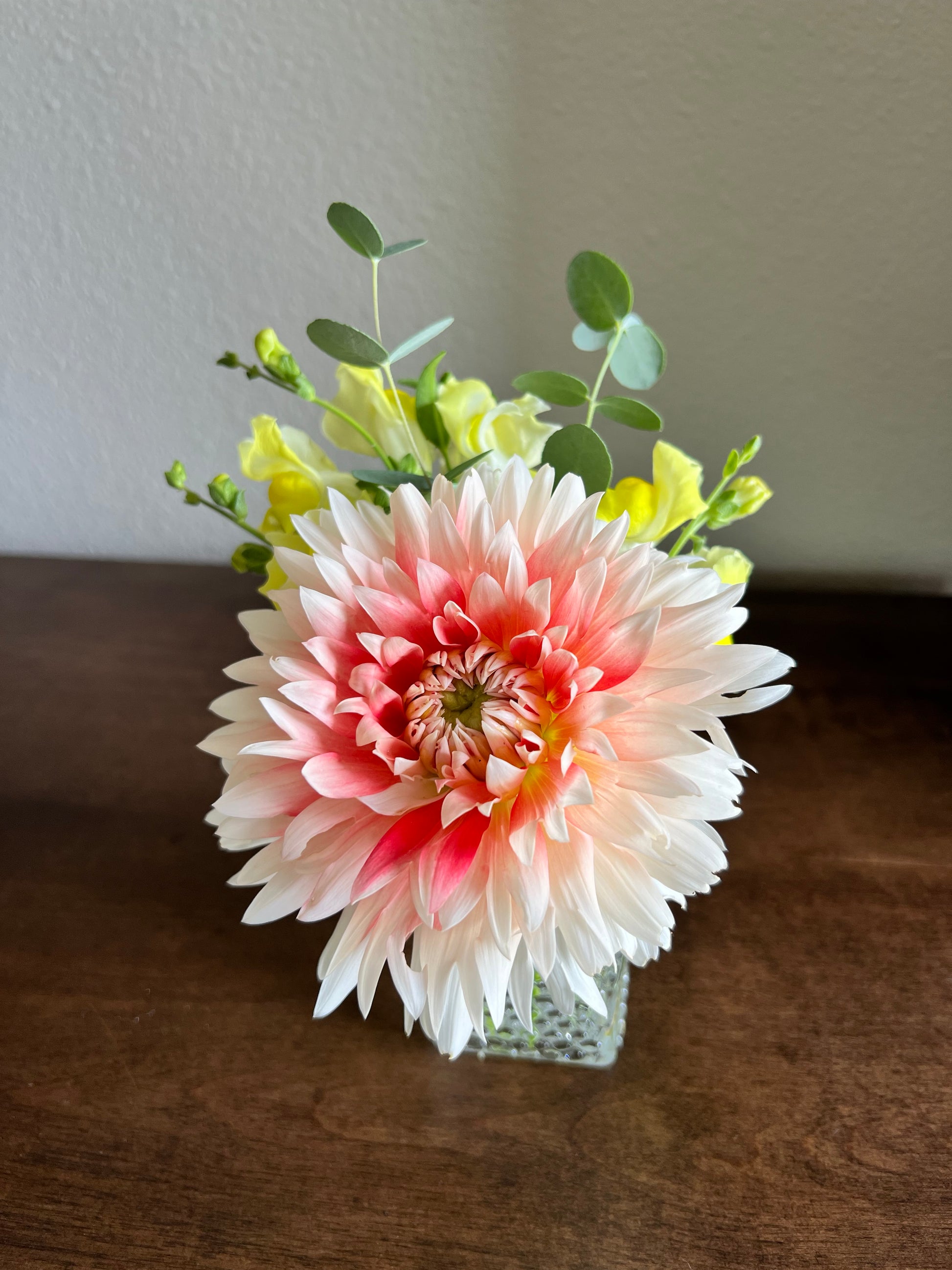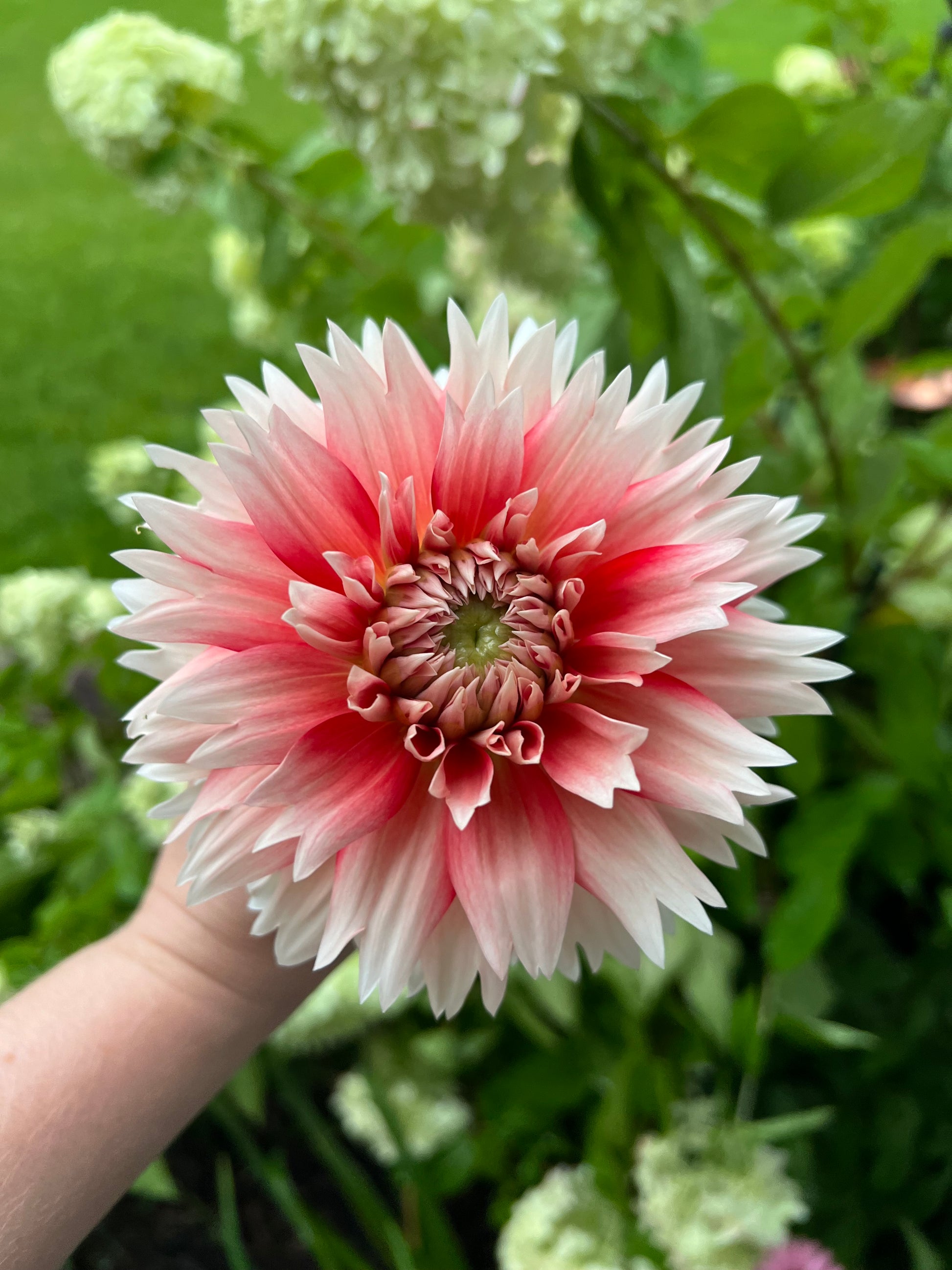 This laciniated beauty took some time to win me over, but as the season progressed, its unique charm became undeniable. With a vivid red center that gradually fades to white at the frilly petal edges, it’s a true showstopper. Earlier in the season, its red hues are deeper, creating a striking contrast that softens as time goes on. This bloom can range in size between 4-6 inches.